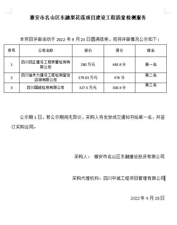 雅安市名山區(qū)東融梨花溪項目建設工程質(zhì)量檢測服務